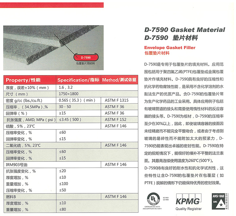D-7590是我司推出的一款專用于搪玻璃反應(yīng)釜的無石棉密封板